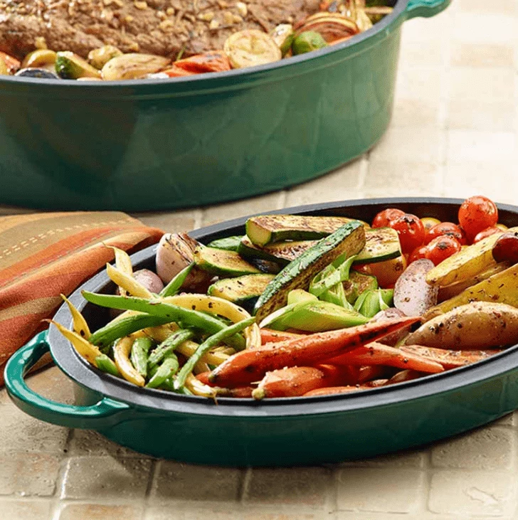 - Durable enameled surface that is easy to clean / dishwasher safe
