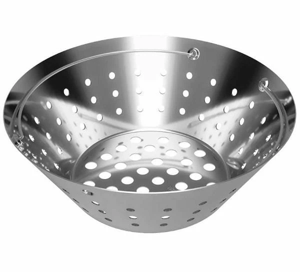 The Big Green Egg Stainless Steel Fire Bowl is a quick and easy way to lift charcoal out of the EGG for easy cleanup. Two convenient handles make it easy to shake out cool ash, allowing you to maximize airflow for quicker startups.