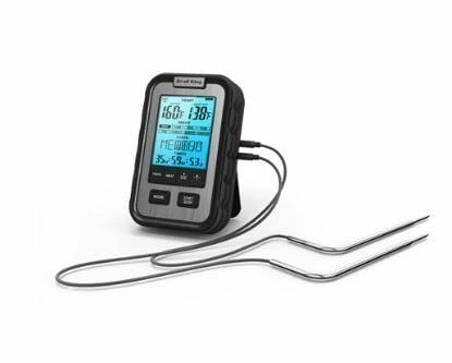 Monitor the whole cookout – reads two temperatures at one time. Two cuts of meat, no problem; a roast and the ambient grill temperature, no sweat.