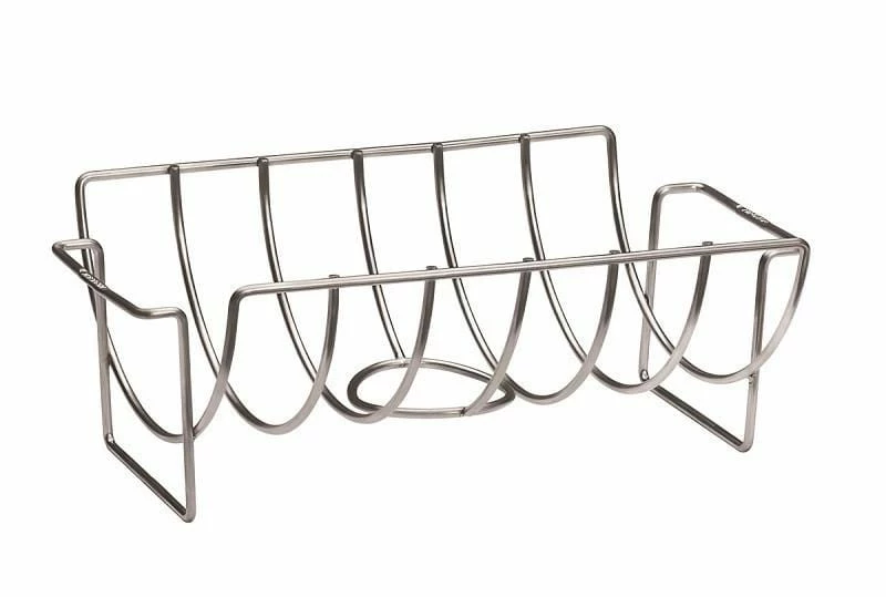 The only rack you will ever need for your grill. The reversible design allows you to roast large beef, chicken, or pork roast, elevating it off the cooking grids for convection and airflow. Flip the rack over and it converts into a beer can chicken roaster, stabilizing the can and the chicken for a delicious meal. This roasting rack is also great for sliding up to four racks of ribs into the slots. Dishwasher safe, the 3-in-1 Roasting Rack is easy to clean.