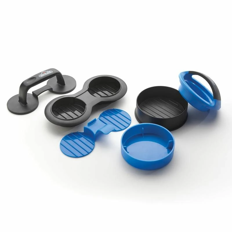 Having trouble keeping your hamburgers and sliders looking like they should? The Napoleon Gourmet Burger Press Kit is perfect for you. Easily form perfectly round burgers in the full sized burger press. The nonstick surface and removable bottom plate allows you to easily extract them. The cover comes off the handle to reveal a smaller press so that you can make stuffed burgers too, perfectly sealing in your favorite fillings. The slider press is just as fantastic, and you can form two perfectly proportioned sliders at once, and the bottom plate has a handy little hook to lift them out. Try Napoleons Gourmet Burger Press Kit today and enjoy restaurant style gourmet burgers today.
