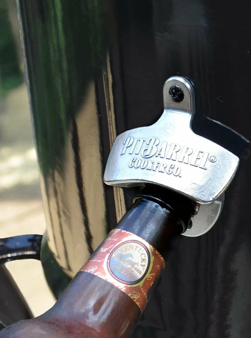 - All Pit Barrels come with predrilled mounting holes for this steel bottle opener