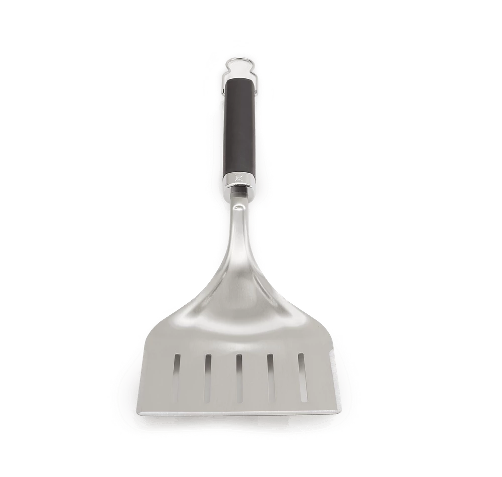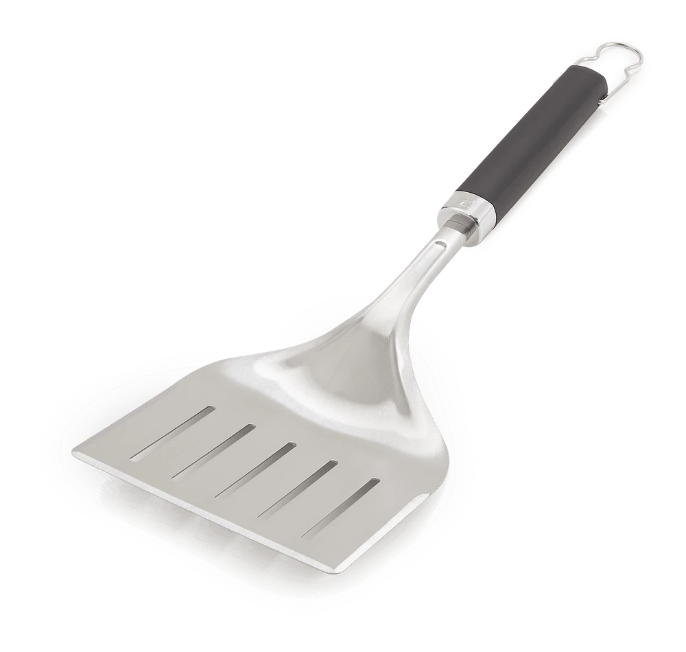 Lift and move large cuts of meat or delicate fish with ease. The wide grill spatula features a 3-sided beveled edge design that allows you lift foods with precision from any angle. The heavy-duty stainless-steel construction and soft-touch handle provide control as the oversized head picks up large cuts or fragile foods with minimal effort.