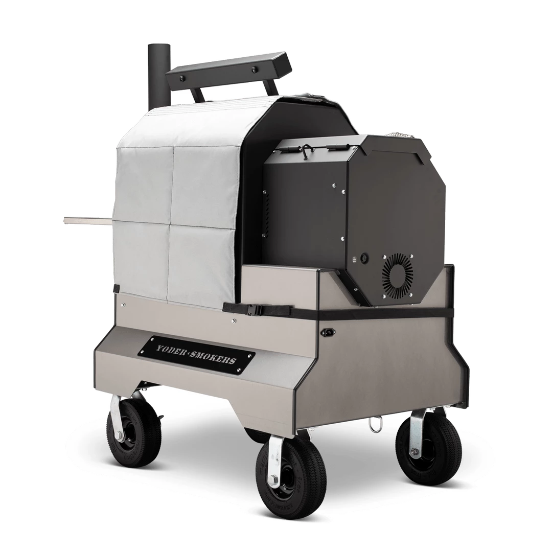 This thermal jacket for the Yoder Smoker YS480 pellet grill helps maintain temperatures during cold winter months. Use less pellets and cook more efficiently. Three pieces fit around cooker body.