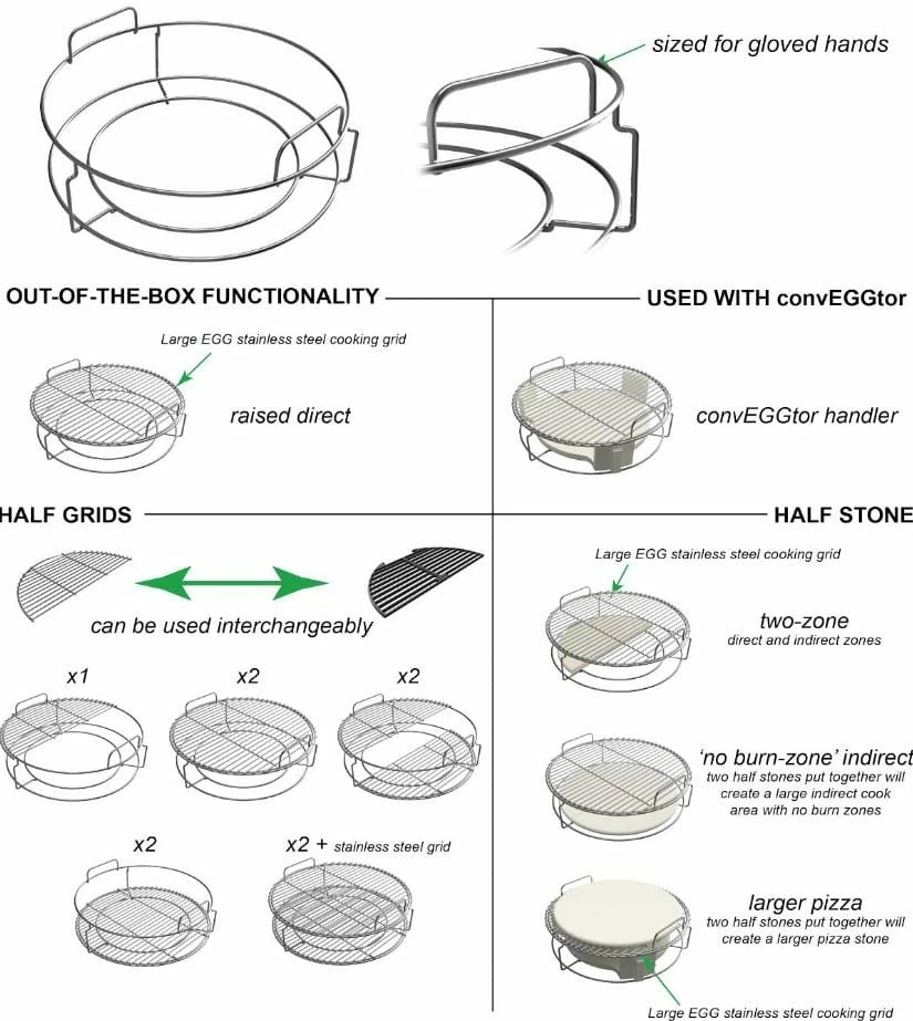 Do more with your already amazing convEGGtor! Big Green Egg’s new convEGGtor Basket allows for easy placement and removal of the convEGGtor, and also allows for multi-level direct or indirect cooking.
