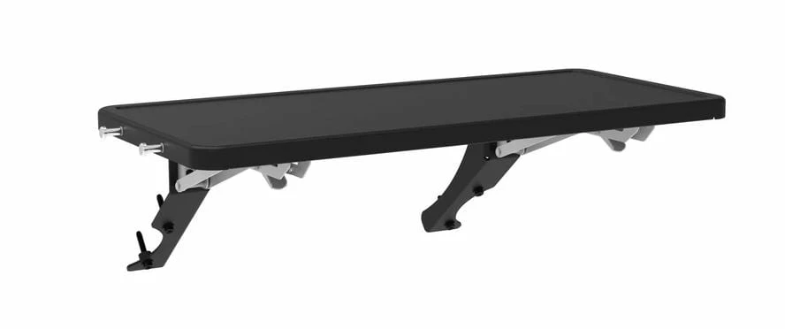 Broil King front shelf designed for Regal and Baron Pellet series grills. The shelf is perfect for tools with the integrated tool hooks, food prep and more! The shelf even folds away for easy storage!
