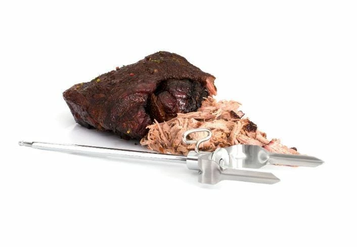 Make short work of large cuts of cooked meat with Broil King’s Meat Shredder tool! This stainless steel fork connects to a power drill via 1/4″ hexshank for easy shredding. It even disassembles for easy cleaning!