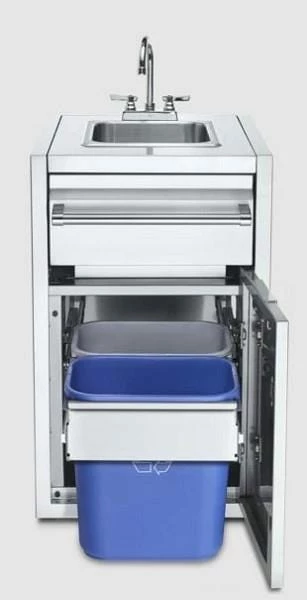 The Infinite Series built-in cabinet with sink is perfect for hand, produce and/or cutlery washing. It also has a paper towel holder and a storage cabinet with a double garbage bin holder below to fully compliment this sink and your outdoor kitchen.