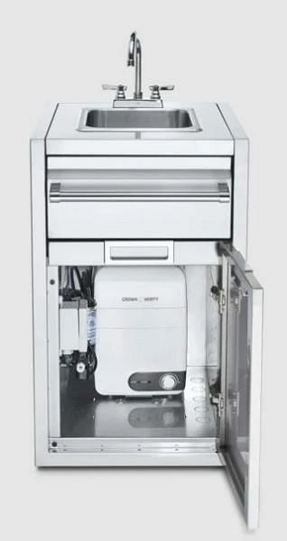 The Infinite Series built-in cabinet with sink is perfect for hand, produce and/or cutlery washing. It also has a paper towel holder and a storage cabinet with a water heater (120V) below to fully compliment this sink and your outdoor kitchen.