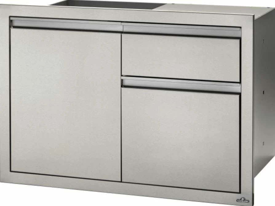 Creating your own custom grill island has never been easier with Napoleon’s Built-In Components. Every great outdoor kitchen needs storage; this 36″ x 24″ built-in component has everything you need for storage. Featuring two generous drawers and a single large door for storage. The stainless steel construction, soft closing hardware, seamless trim, and anodized aluminum handles provide durability and endless installation possibilities.