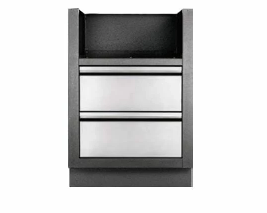 Specially made for the Built-In 700 Series 18″ Gas Grill Heads, this carbon colored, powder coated, galvanneal cabinetry features increased durability from the two-coat pebbling finishing system. Two stainless steel drawers are mounted on smooth gliding tracks for under grill storage. Installation is a breeze with knockouts for gas and electrical. Levelling feet ensure a balanced surface, even if your patio isn’t perfectly level. Partner this cabinet with the Built-In 700 Series 18″ Gas Grill Head and the perfect OASIS cabinets for a custom outdoor grilling OASIS.