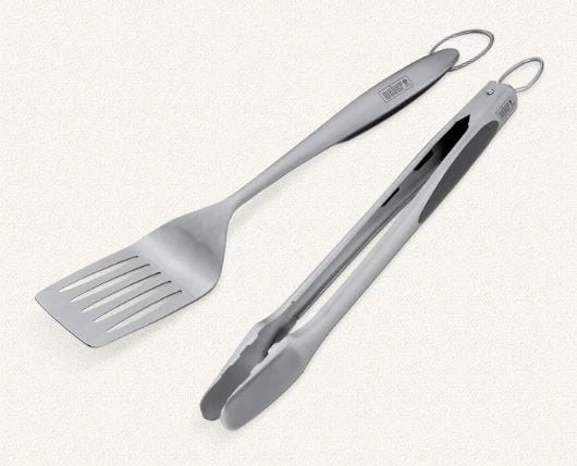 A spatula and tongs go together like salt and pepper. Whether you’re flipping burgers, turning hot dogs or transferring chicken from a tray to the cooking grates, the spatula and hands-free locking tongs in the Deluxe Tool Set are two of your everyday grilling essentials.