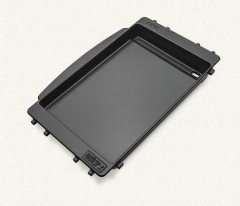 Transform your grill into a multi-functional appliance with the Weber Griddle! The reversible griddle can be used as a flat surface for cooking or flipped over to make an elevated grill. Grill pancakes, eggs, sausages, and bacon in the morning or searing steak and seafood at night. This Weber griddle is made of premium-grade cast aluminum and includes a removable/replaceable heat shield with a drip tray for easy cleanup. Big enough for 17 pancakes, a dozen eggs, and a pound of bacon, the Griddle is the perfect companion for Weber Spirit II 200/300 and Spirit 200/300 Series gas grills. The heavy-duty cast aluminum design ensures even heat distribution so your food will cook evenly every time. It’s also great for searing steaks, cooking burgers and other meats, sautéing veggies, or even baking desserts. With all that it can do—cooking breakfast on a warm summer morning or whipping up an entrée on crisp fall evening—it’s no wonder the Griddle has become a favorite among backyard chefs everywhere. It’s not just a grill, it’s a Griddle. The Weber Grill Griddle has an easy-to-clean semi-gloss porcelain enameled and cast-iron surface. It is the perfect partner for your outdoor kitchen.