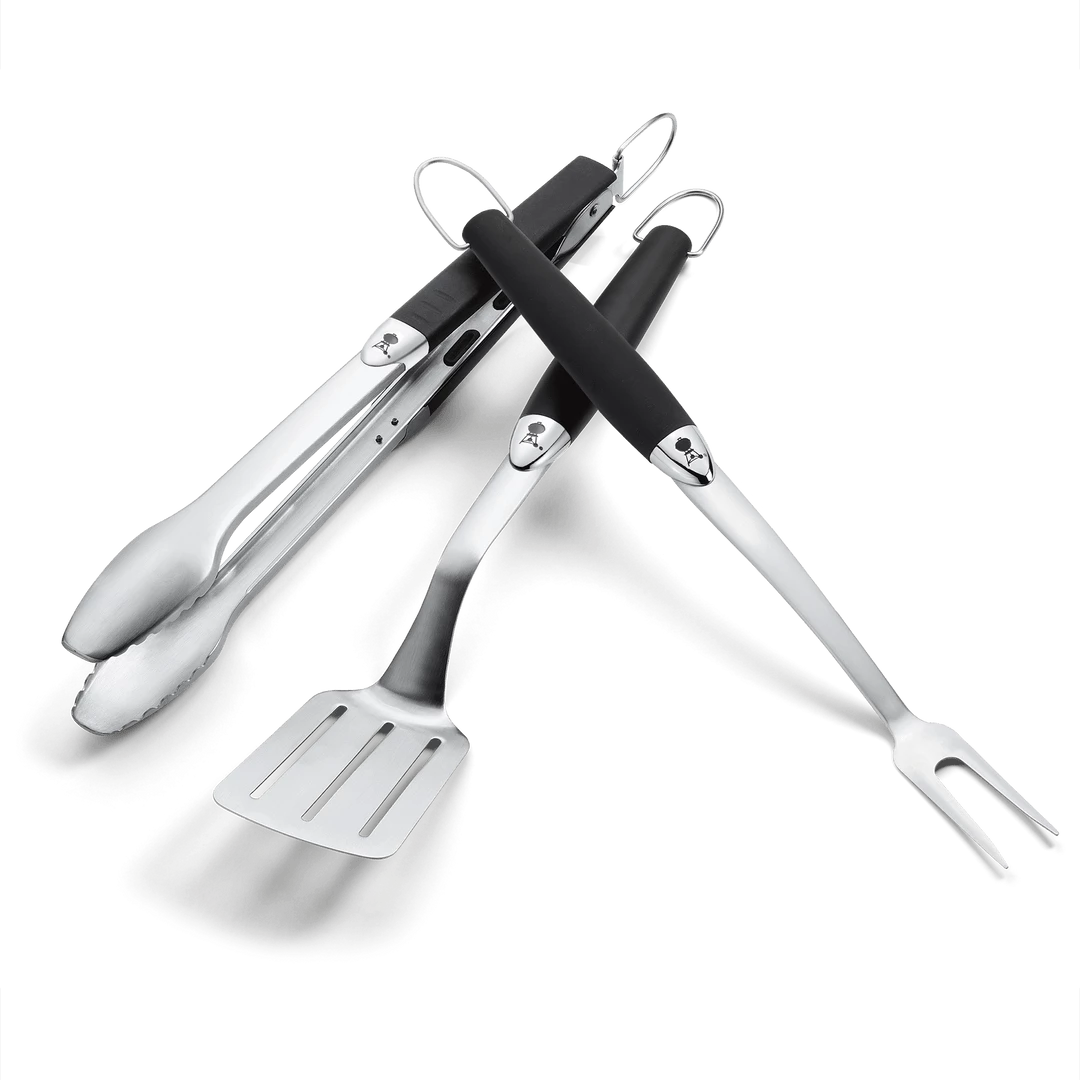 Flip burgers, turn sausages, or hold beef brisket in place for a steady slice. The angled spatula, hands-free locking tongs, and sturdy grilling fork in the Premium Tool Set are three of your everyday essentials in one kit.